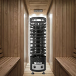 The Thermexa ProGuard Sauna Heater is designed for those who demand the best in sauna performance. This premium electric heater features a cylindrical design with a protective cage, dual control knobs, and a stable three-leg base. Engineered for efficiency and safety, it delivers consistent heat output while maintaining a sleek, modern aesthetic for luxury sauna environments.